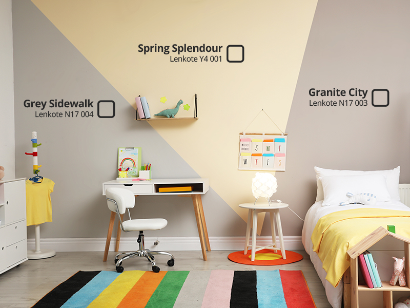 Di dalam kamar, anak akan banyak menghabiskan waktu. Karena itu, penggunaan cat tembok yang tepat tidak boleh dianggap remeh. Sebagai bidang terluas di sebuah ruangan, tembok adalah tempat bersarang bakteri dan kuman. Beberapa bakteri yang sering menggihapi tembok rumah antara lain Escherichia coli (E. coli), Methicillin-Resistant Staphylococcus aureus (MRSA), dan Staphylococcus aureus. Pastikan Anda menggunakan cat tembok dengan fitur anti bakteri.