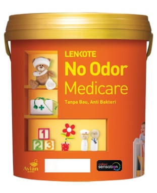 Cat tanpa bau dan anti bakteri, Lenkote No Odor Medicare ini tentunya sangat cocok jika kamu aplikasikan pada ruangan seperti kamar bayi, kamar orangtua yang sudah lanjut usia, kamar orang yang sedang dalam pemulihan kesehatan, kamar mandi, dapur, atau ruangan lainnya yang membutuhkan suasana sehat dan bersih.
