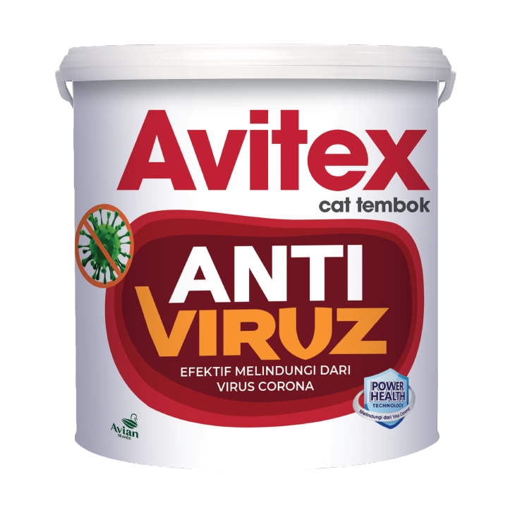 Cat tembok interior premium Avitex Anti Viruz dibekali cat dengan Powerhealth Technology yang telah teruji ampuh melindungi permukaan tembok hingga 99,9% dari berbagai macam virus seperti Coronavirus, Influenza, Coxsackie, dan 10 jenis bakteri patogenik seperti E.coli, MRSA, dan Mycobacterium tuberculosis (TBC).