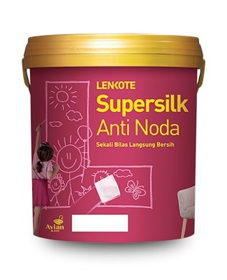 Cat tembok interior dengan kualitas premium seperti Cat Tembok Supersilk Anti Noda, merupakan solusi terbaik untuk menghilangkan coretan dinding yang sulit dibersihkan karena memiliki fitur efek daun talas sehingga noda coretan pensil, krayon hingga noda makanan, minuman dan debu tidak mudah menempel dan sangat mudah dibersihkan hanya dengan sekali bilas langsung bersih.