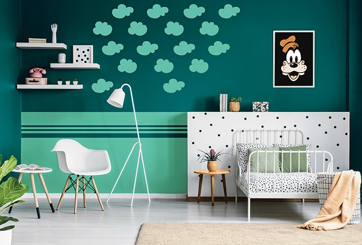 Untuk kamar anak, kamu bisa mengaplikasikan cat dari Avian Brands Seri Disney, yaitu Avitex 4kids. Avitex 4kids cat tembok interior sangat baik untuk menutupi ketidaksempurnaan permukaan tembok, sehingga tembok terlihat halus dan rata. Berkolaborasi dengan Disney sehingga mampu mewujudkan interior rumah (kamar anak) yang menarik, menyenangkan dan tahan lama.
