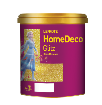 Hadir dalam dua varian, yaitu gold dan silver yang tentunya sangat cocok dipadupadankan dengan warna ungu muda, sehingga kamar anak akan tampil mewah. Untuk efek glitter yang maksimal, Sahabat Avian Brands bisa berikan sorotan lampu pada bidang yang diaplikasikan produk cat spesial efek HomeDeco Glitz ini.