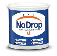 No Drop Cat Pelapis Anti Bocor merupakan cat pelapis anti bocor dengan sifat elastis, kedap air serta tahan terhadap segala cuaca. Cat ini dapat kamu aplikasikan juga pada kamar mandi, dinding eksterior maupun interior, seng/ asbes, atap, beton, talang atau sambungan. Cat ini mampu menutup retak rambut dan pori-pori halus sebagai sumber awal kebocoran.