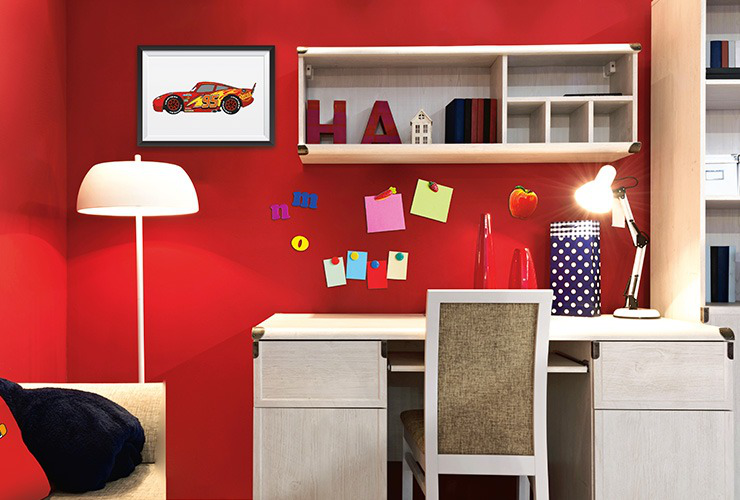 Khusus untuk si kecil yang aktif kamu bisa memberikan sedikit sentuhan berbeda pada ruang belajarnya. Berikan warna kesukaannya pada dinding ruang belajar. Sahabat Avian Brands bisa gunakan salah satu produk Cat Seri Disney yang cat dengan spesial efek HomeDeco Magnetic.