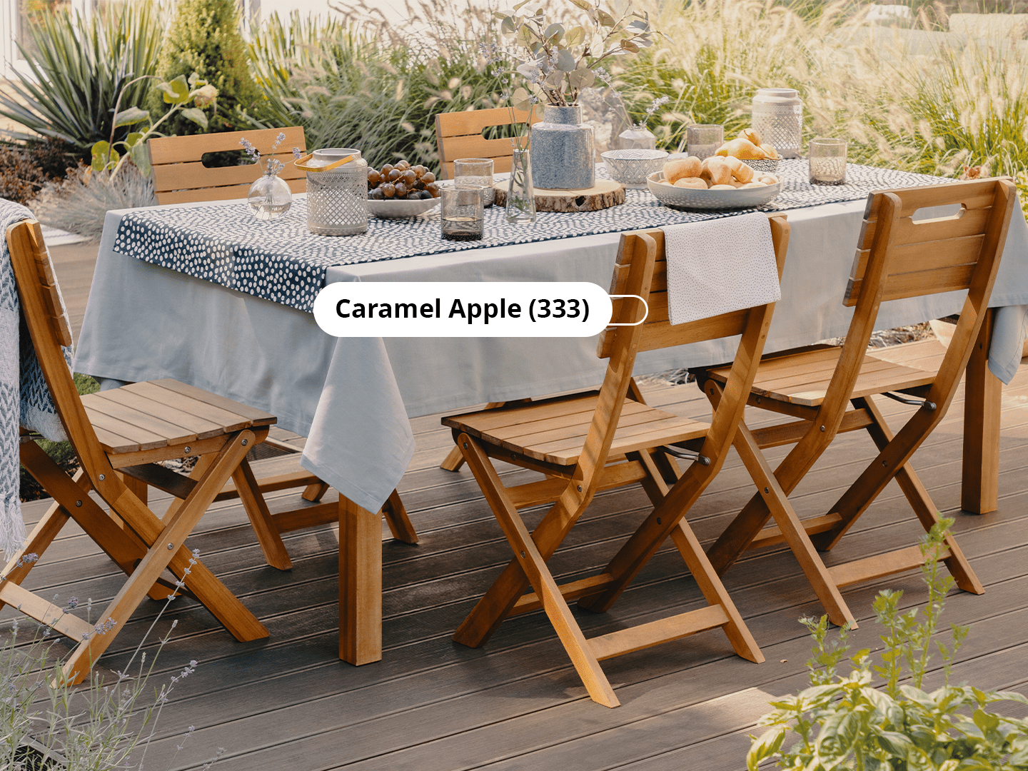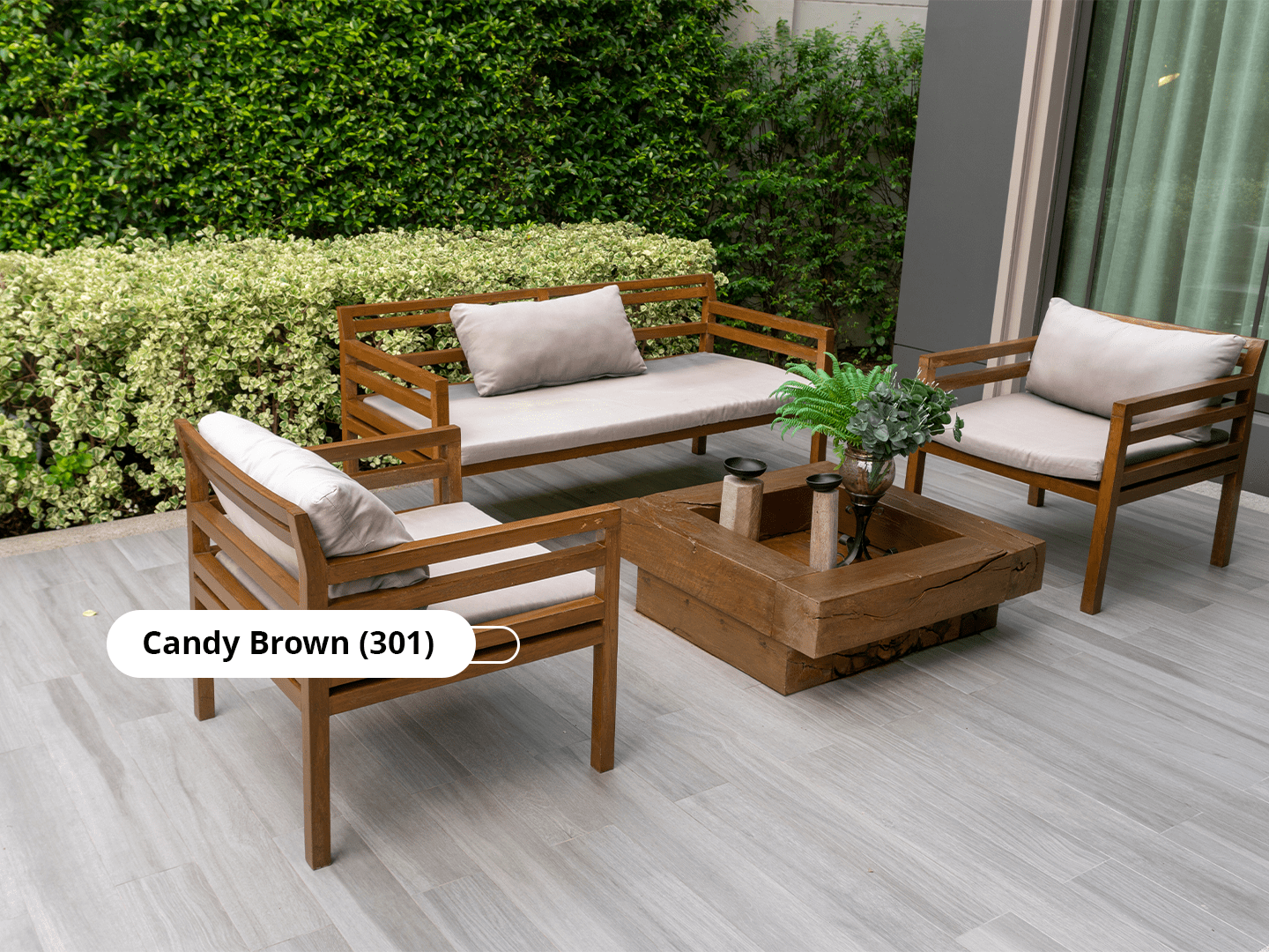 Warna kayu alami seperti Natural Oak menjadi pilihan yang populer untuk furnitur outdoor. Warna kayu yang hangat dan kaya ini memberikan kesan alami yang indah, sesuai dengan lingkungan luar rumah Sahabat Avian Brands. Natural Oak juga akan menonjolkan serat-serat alami kayu yang memperkuat estetika furnitur, sementara lapisan catnya melindungi kayu dari sinar UV dan kelembapan.