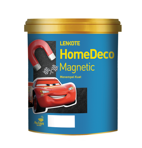 Dengan mengaplikasikan HomeDeco Magnetic ini, bisa memberikan alternatif media permainan untuk si kecil. Dengan mengaplikasikan produk ini sebanyak 3-4 lapis, hasil akhirnya lapisan dapat menarik magnet dengan kuat sehingga magnet langsung menempel ke dinding kamar. HomeDeco Magnetic diformulasikan khusus agar mudah diaplikasikan dengan roller, kuas maupun kape pada semua substrate/ media interior.