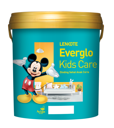 Cat Tembok Everglo Kids Care merupakan cat interior premium dengan hasil akhir kilap dan halus sehingga memberikan kesan mewah. Sangat cocok untuk diaplikasikan pada kamar anak yang sedang gemar-gemarnya meluapkan kreativitas, karena Everglo Kids Care mudah dibersihkan dengan air. Jadi, tidak perlu takut lagi si kecil berkreasi di dinding.