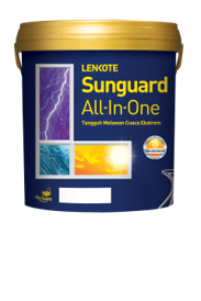 Cat tembok eksterior dengan UV Guard Technology yang dapat memantulkan sinar UV matahari, sehingga dapat menurunkan suhu ruangan hingga 5 derajat Celcius. Formula khusus dari Sunguard All-In-One dapat menahan panas dan warna tidak mudah pudar karena perlindungan yang luar biasa terhadap sinar UV. Suhu ruangan di rumah pun menjadi sejuk dan menjadi lebih nyaman untuk ditempati.
