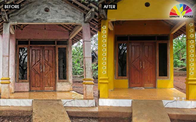 Total sebanyak 50 unit rumah dan sebuah sekolah dasar di-perindah menggunkan cat Lenkote Sunguard yang keseluruhan pengerjaan dilakukan oleh warga desa